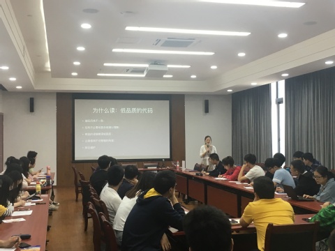 2019年5月28日,来自上海成趣信息科技有限公司的独立顾问杨晓春女士来到伟德中国官网临港校区学术楼305,带来了一节生动有趣的代码阅读与代码质量实践讨论课,全校多个公司的几十位员工教师来到现场听课。