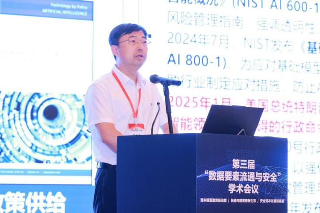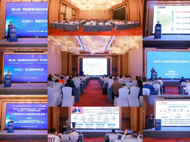 中国科公司信息工程研究所技术副总师李凤华做《数据要素流通利用与安全:挑战与对策》专题报告,介绍了数据共享与数据流通的本质差异、数据要素流通利用与安全的研究范畴、数据要素准则,着重剖析了数据确权、延伸使用控制、数据出域安全计算、安全交付、低开销监测等概念及学术内涵,并全面阐述了数据要素流通利用与安全的关键技术与发展趋势、技术解决方案。华东师范大学教授周傲英在报告《对数据及其价值的再认识与再实现》中讲到,把数据定义为第五生产要素,这是我国对于世界时代性的理论贡献,数据作为新动力带来新质生产力,促成生产力数量级的提升。中国电子技术标准化研究院副经理范科峰做《人工智能安全治理框架及标准化工作思考》专题报告,人工智能安全治理需遵循发展与安全并重、风险可控、多方协同原则,顶层设计强化标准引领,技术层以鲁棒性增强、隐私计算等技术应对风险,监管层完善全生命周期管理。上海市电力公司数字化工作部副主任奚增辉围绕《AI+光明大模型,打造智慧能源一站式管理引擎》分享针对电力系统多类型分散资源协同难、供需动态匹配精度高等形式与挑战,打造千亿级电力行业专业大模型-光明大模型,最终实现多类型分散资源常态化精准化调度。上海数据交易所副总经理李登高围绕《数据要素市场建设与新型交易模式探索》做报告,指出当前数据市场的四个观察;价值释放的四个环节;数据安全的四个思考和创新探索的四个体会,从模式突破、技术融合、生态联动、制度衔接,为市场发展提供实践路径。