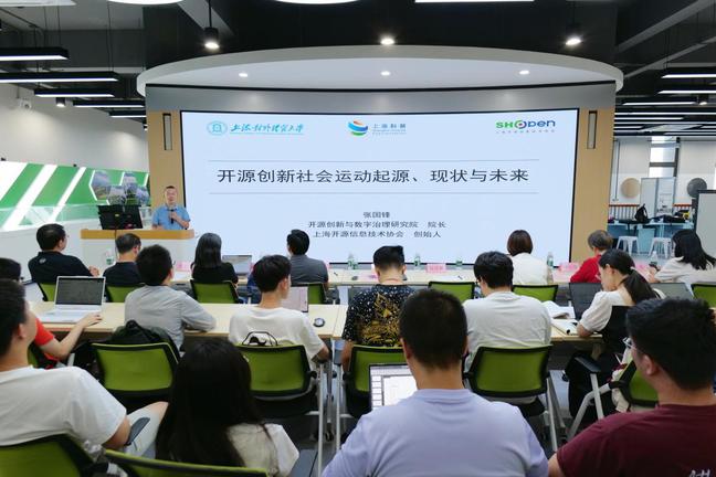 9月12日,bevictor伟德官网博达讲坛邀请上海开源信息技术协会秘书长,上海对外经贸大学开源创新与数字治理研究院经理张国锋开展《开源创新社会运动历史、现状与未来》讲座。上海道客网络科技有限公司首席运营官张红兵、技术总监李越、技术专家石勇军、赵燕宁,人力资源总监张倩倩应邀参加。院常务副经理张传林、党委副书记齐永晓、教学秘书徐曼、计算机系主任叶文珺、《云原生&开源技术夏令营》课程负责人薛梅、团委书记卢珍共同出席本次博达讲坛。