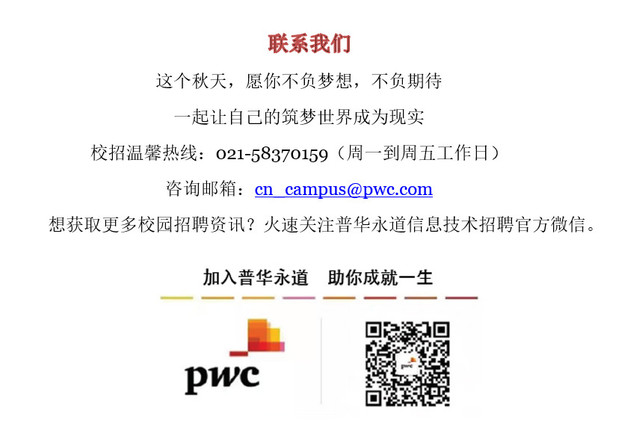 【招聘信息】112-201909普华永道全球信息技术优创中心2020校招