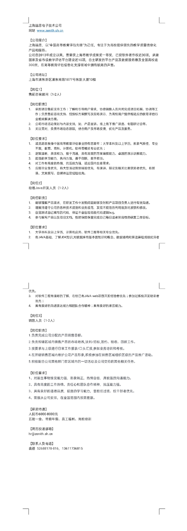 【招聘信息】184-202005上海喆思电子技术公司