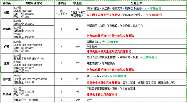 bevictor伟德官网辅导员分工表(2020-2021学年第1学期)