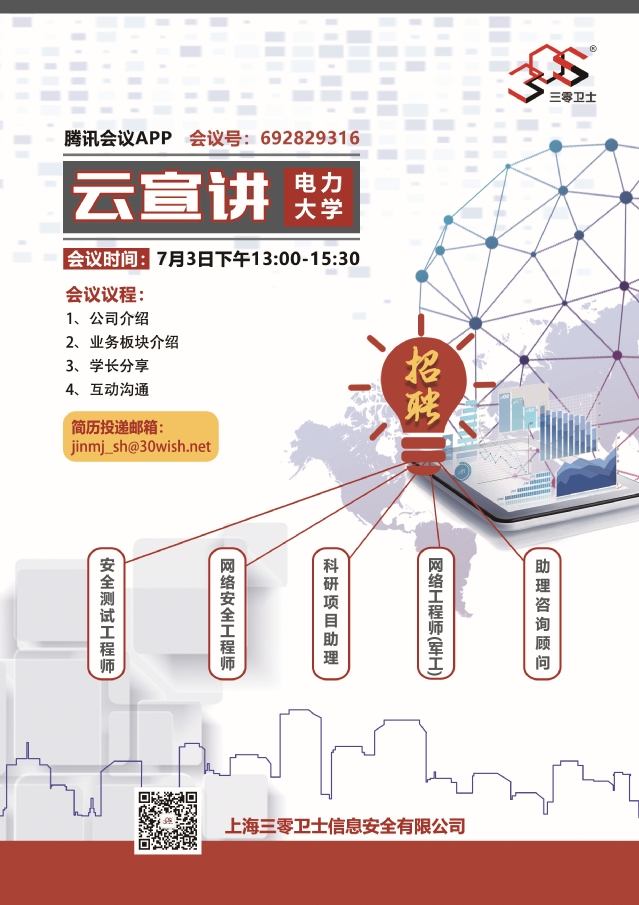 【招聘信息】192-202006上海三零卫士信息安全有限公司宣讲招聘
