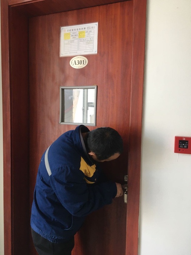 A301实验室门锁坏,开不开门,我们报物业来维修