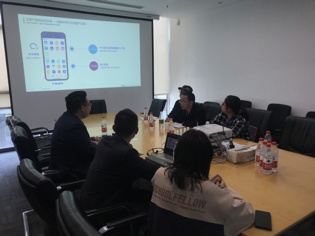 首先,上海泛微网络科技股份有限公司副总裁陈驰先生带领大家参观了公司的办公环境,讲解了泛微科技发展历程和企业文化,介绍了目前泛微所取得的成就和面临的机遇和挑战,并对员工发出邀请。随后,HR刘建辉向同学们做公司介绍,泛微一家专注于移动办公软件的企业,OA系统、电子签章、电子签名都是他们的核心内容,介绍了企业对高校毕业生的招聘计划,并诚邀同学参加。最后,毕忠勤、余南飞、李晋国分别与泛微区域总监闻丰和EBU事业部总经理孟连磊就教学、就业以及科研进行共建洽谈,初步达成共建意向。