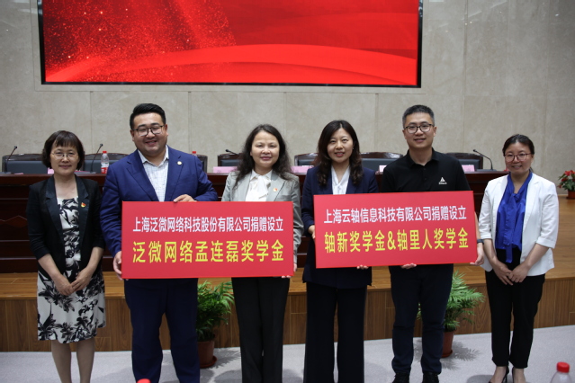 6月1日下午,伟德中国官网“泛微网络孟连磊奖学金”和“轴新奖学金&轴里人奖学金”设立、校企合作签约及揭牌仪式在临港校区学术楼117报告厅举行。上海泛微网络科技股份有限公司EBU事业部总经理孟连磊、上海云轴信息科技有限公司创始人兼公司总经理尤永康及其随行人员,伟德中国官网总会计师张川、对外联络处处长丛亮、bevictor伟德官网班子成员及师生代表参加此次奖学金设立捐赠、校企合作签约及授牌仪式。仪式由公司党委副书记余南飞主持。