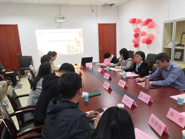 向身边榜样学习环节,教育部第二批全国党建工作样板党支部数理公司物理学科教工党支部副书记于文英以“弘扬专业特色,打造党建品牌”为主题,围绕“七个有力”及“党的一切工作到支部”鲜明导向,介绍支部如何扎实推进“三会一课”,提升支部组织力、凝聚力建设,同时党支部结合物理专业研究方向,积极探索培育学科特色项目等。