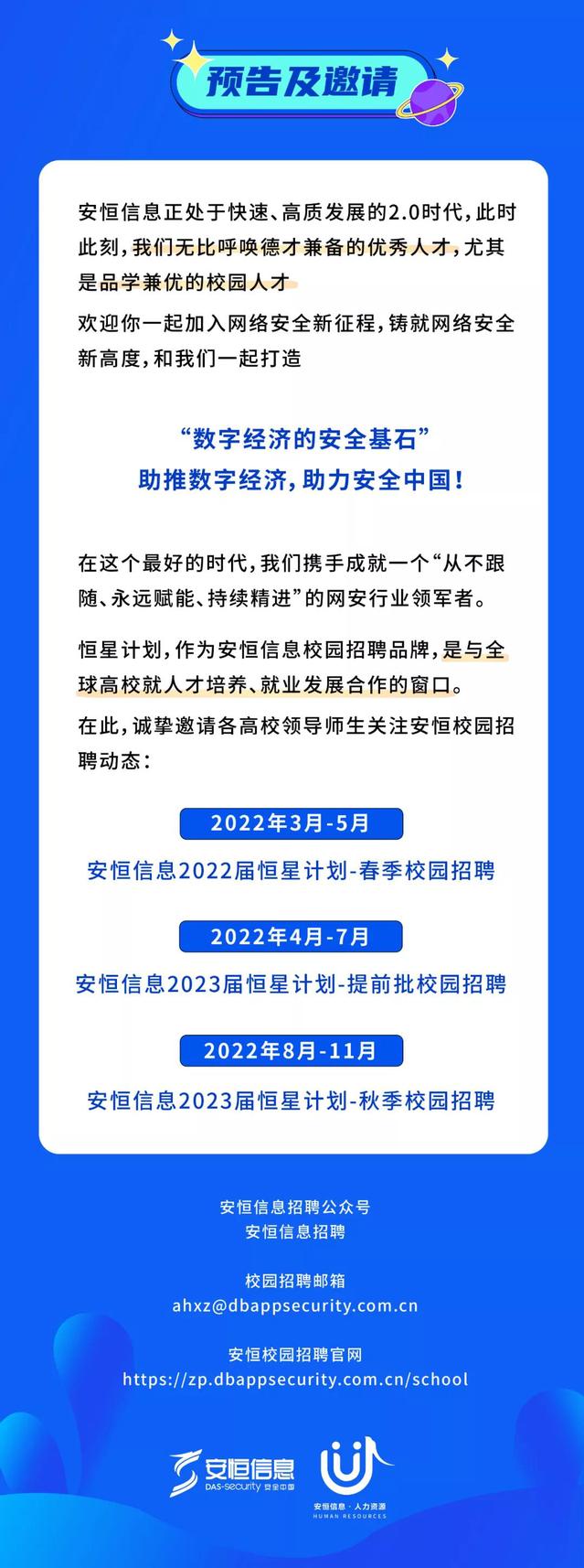 【招聘信息】263-202112安恒信息2022届恒星计划校园招聘