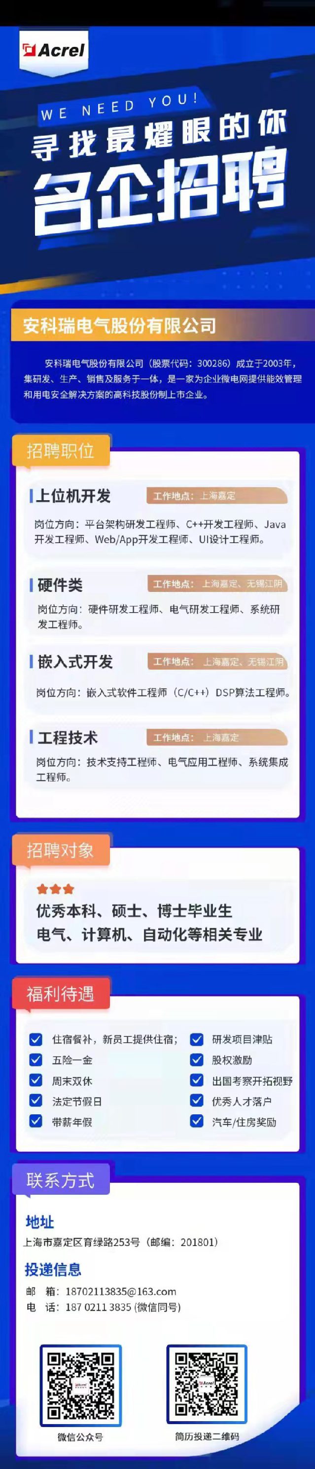 【招聘信息】268-202202安科瑞电气股份有限公司招聘