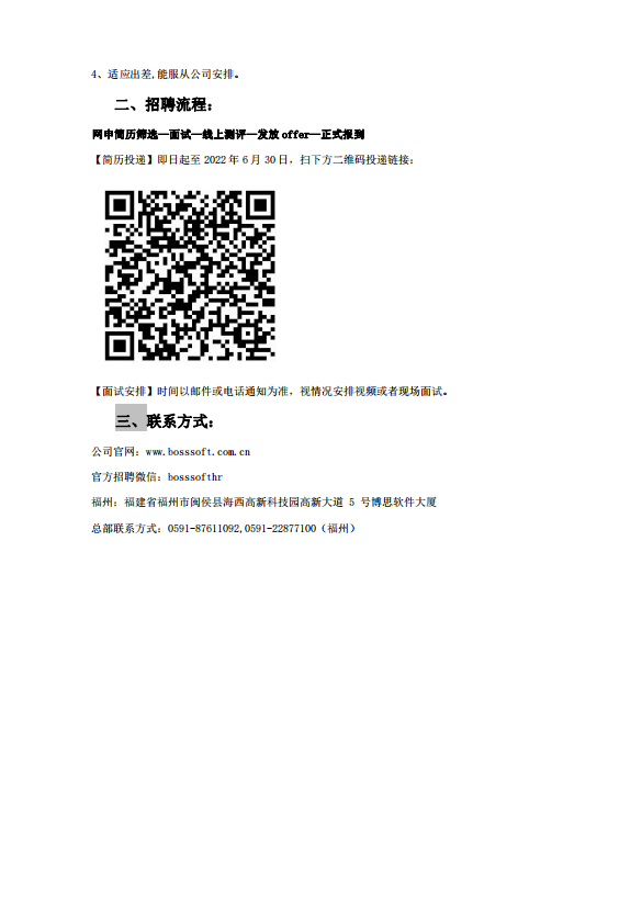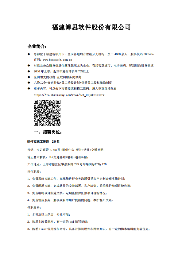 【招聘信息】274-202203福建博思软件公司软件实施工程师招聘