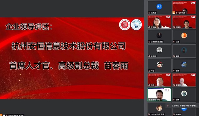 最后,上海泛微网络科技股份有限公司、杭州安恒信息技术股份有限公司两家企业人才招聘专员分别就企业发展、招聘计划、培养目标、薪资待遇等方面展开宣讲,并与在场同学交流互动。