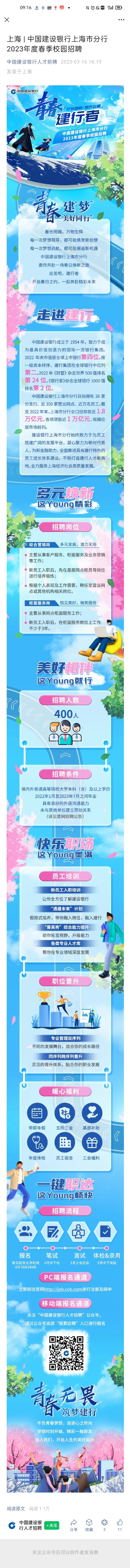 【招聘信息】331-202304中国建设银行上海市分行2023年度春季校园招聘