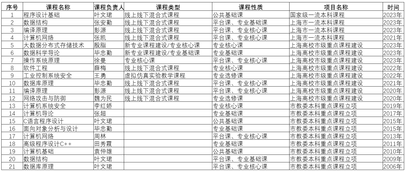 bevictor伟德官网主持建设上海市重点课程和一流课程清单(2006-2023年度)
