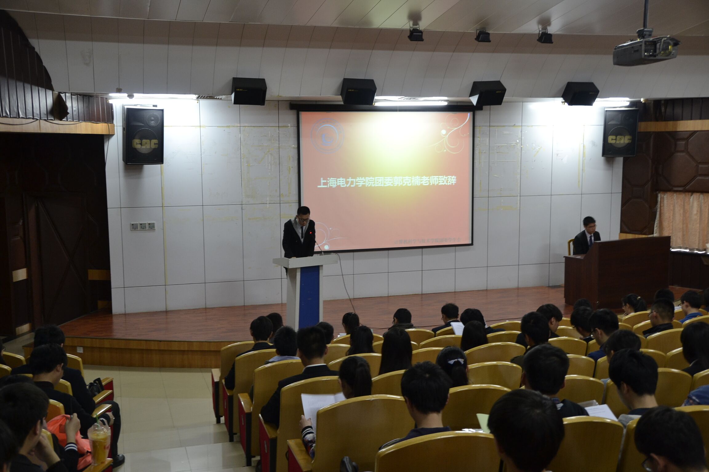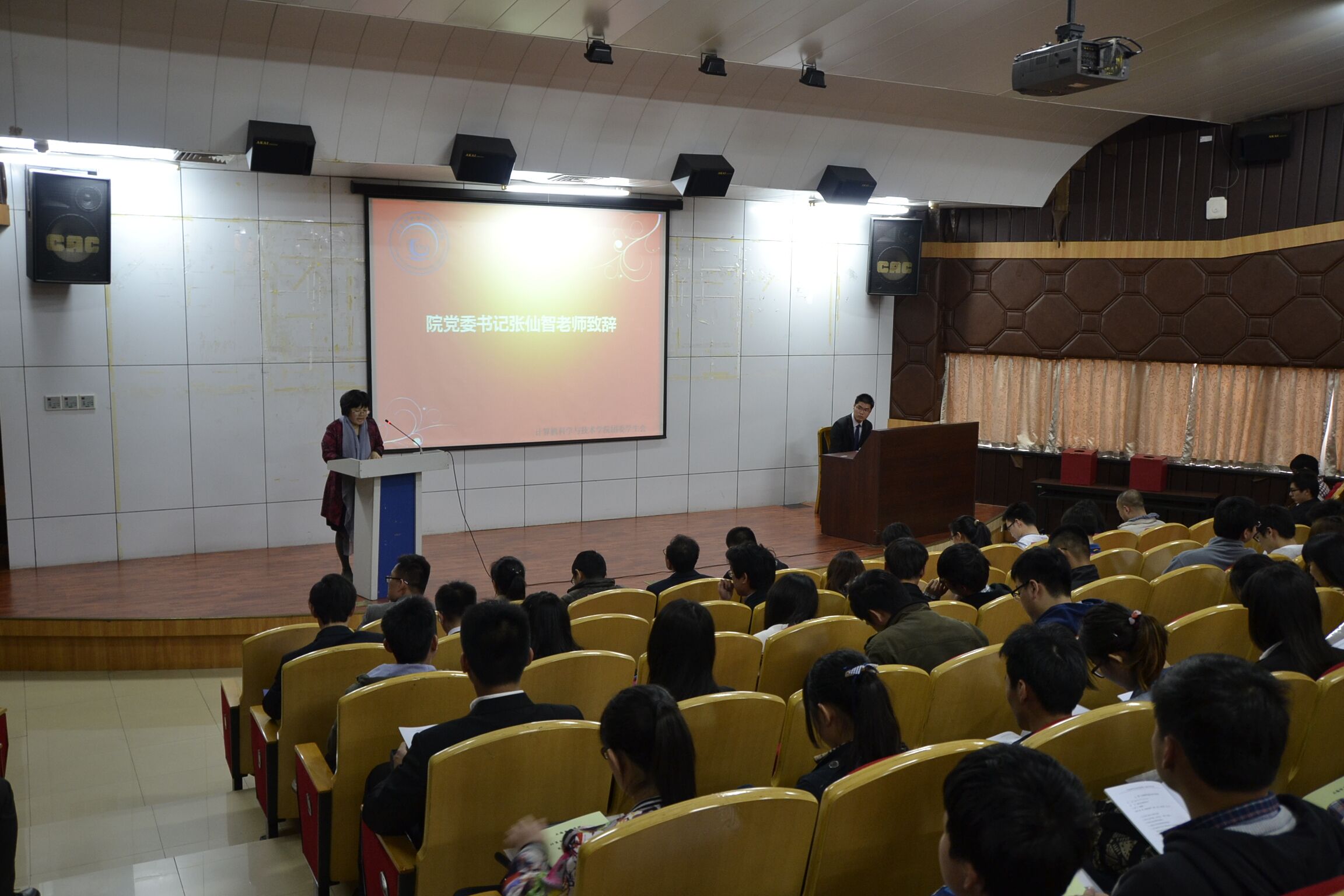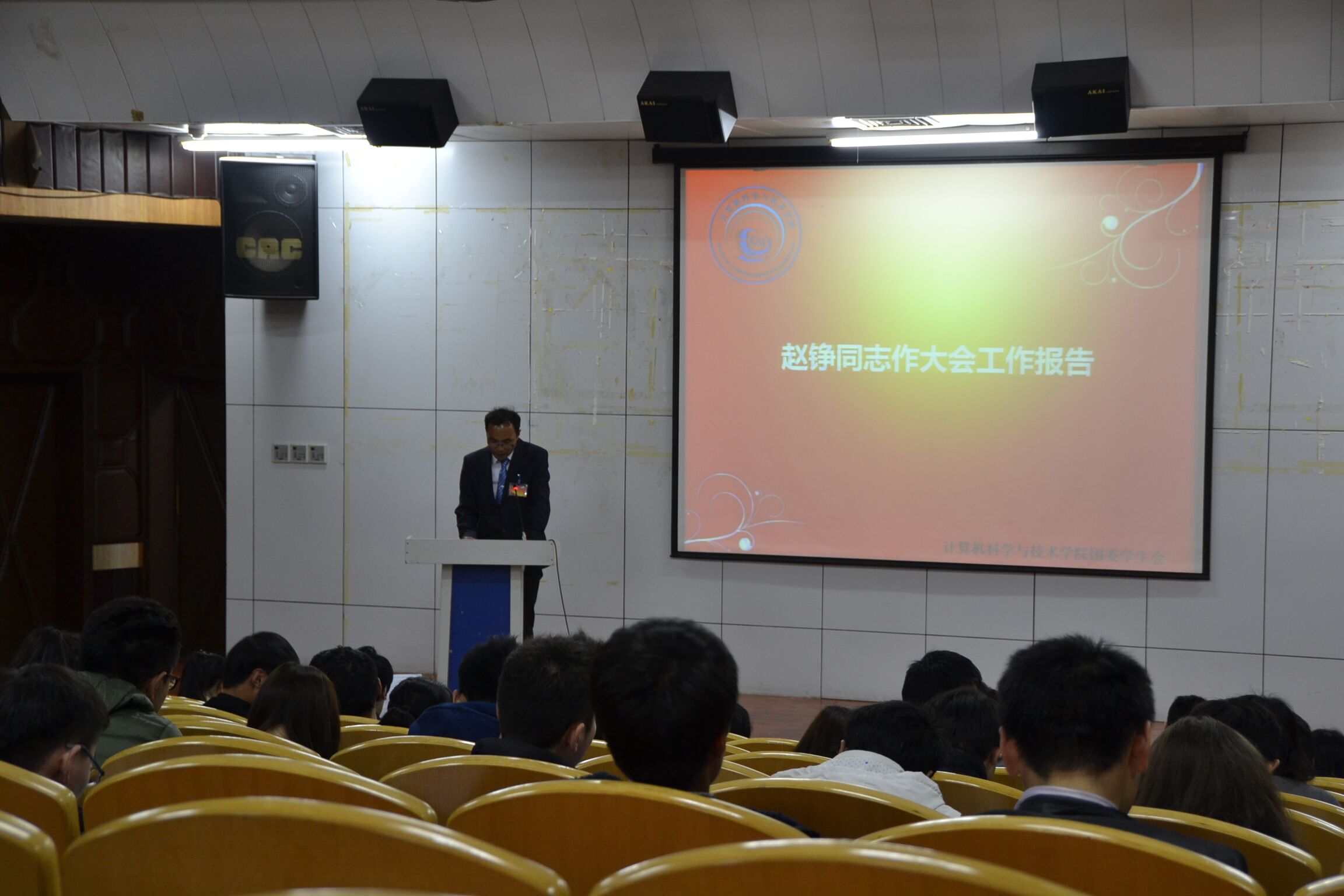 4月15日15时30分,公司第一次团学代表大会在数理报告厅顺利召开。公司党委书记张仙智老师、公司党委副书记王佳丽老师、校团委郭克楠老师、各二级公司团委书记、公司辅导员老师、团学干部、43位团员代表和38位员工代表出席了本次大会。