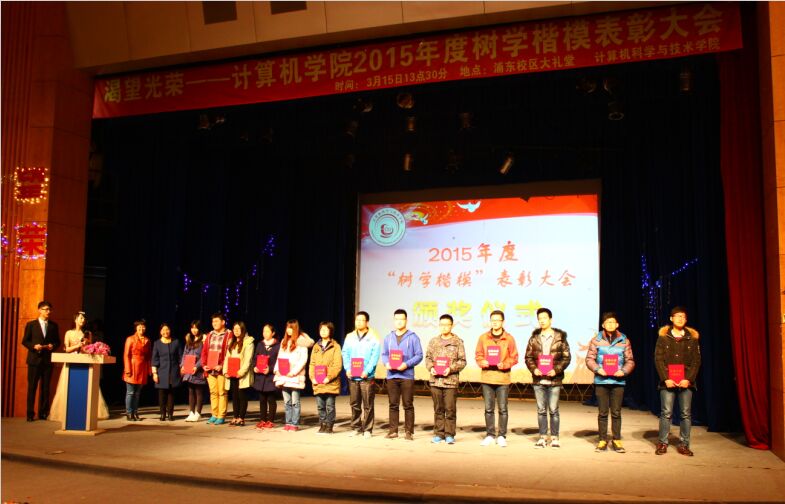 为表彰2015年度在学风建设、社会工作、素质拓展、科创活动、班团建设等方面表现积极、成绩优异的个人和集体,3月15日下午,公司“渴望光荣”树学楷模表彰大会在浦东校区大礼堂举行,公司党政领导班子、各系主任、辅导员与近800名员工参加大会。