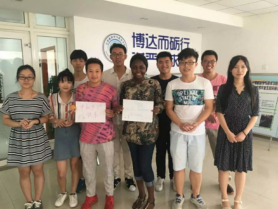 院实验中心主任徐媛组织师生做好拌陷、揉团、压模、抹油、烘烤等流程。参与者各司其职,分工合作。为满足大家不同口味需求,分别制作了榴莲、莲蓉、豆沙、五仁、紫薯等馅儿的月饼。现场氛围欢乐祥和,随着烤箱滴滴定时声,打开箱门,室内瞬间弥漫着月饼的香气。此外,师生还共同制作了冰皮月饼。来自老挝的职工柏罗(音)和刚果共和国的职工李想第一次吃手工制作的月饼,又好奇又兴奋,连说好吃,还对制作月饼表示了浓厚兴趣。