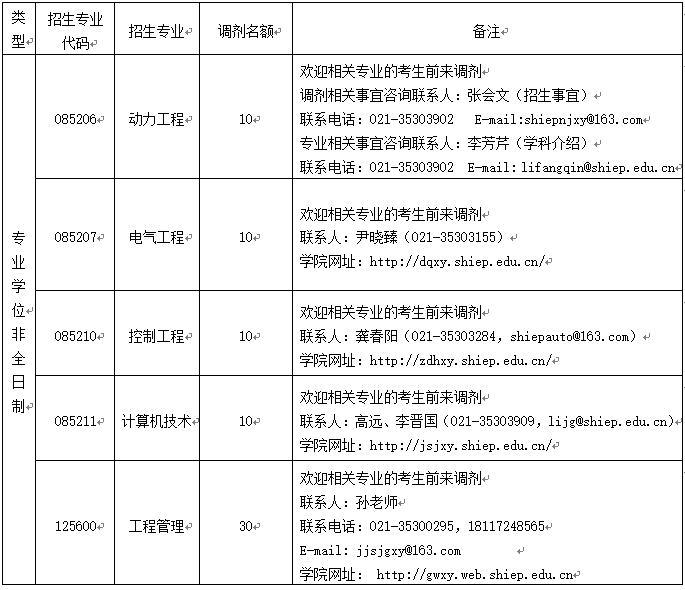 【非全调剂】上海电力公司2018年非全日制硕士研究生招生最新调剂信息
