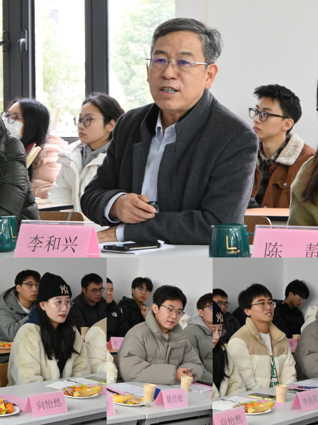 交流座谈中,李董事长与在场师生“围园共话”,研究生们围绕专业学习、学术研究、未来发展等方向谈学习体会、成长收获、挫折挑战。李董事长认真倾听,并就相关问题耐心回应,希望研究生们努力培养科研素养,敢于想象、勇于创新,不断提高自身综合能力和素质,争做担当民族复兴大任的时代新人。