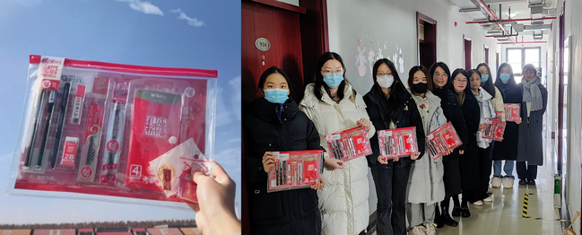 公司老师们将精心准备的礼包亲手送到每一位考研学子手中。礼包中不仅有考试必备的文具,还有老师们挑选的考研福袋,印刻了对员工“成功上岸”的祝福,字里行间都饱含着bevictor伟德官网全体师生对考研学子的真挚关心与美好祝愿。