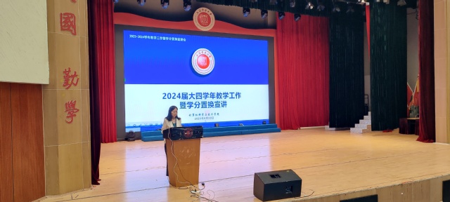 徐曼就毕业班教学工作和学分置换进行了详细讲解。她详细介绍了毕业班教学工作安排,强调了如何做好学业管理,要求同学们关注自己的学分和绩点是否符合毕业相关要求,提醒同学们关注毕业设计的各阶段安排,处理好毕业设计与实习的关系;介绍了学分置换的相关规定和要求,对学分置换的起止时间、课程要求、申请流程和评价考核进行了详细说明。
