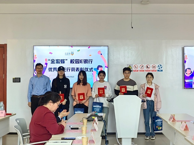 为切实增强员工基础金融知识教育,提高员工金融风险防范意识,2023年5月6日,bevictor伟德官网举办了“金蜜蜂”校园E银行“金融知识面面谈”专题讲座暨2022年优秀员工行员表彰仪式,中国建设银行杨浦支行副行长朱伟杰、个人金融部总经理夏菁、个人金融部产品经理吴垠、定海桥支行副行长孙文琦、计算机科学与技术公司党委副书记齐永晓、“金蜜蜂”社团指导老师张潇月、2022年校园E银行员工行长孙勇、2023年校园E银行员工行长王楠芳及优秀员工行员代表、员工代表参加了此次讲座及表彰仪式。