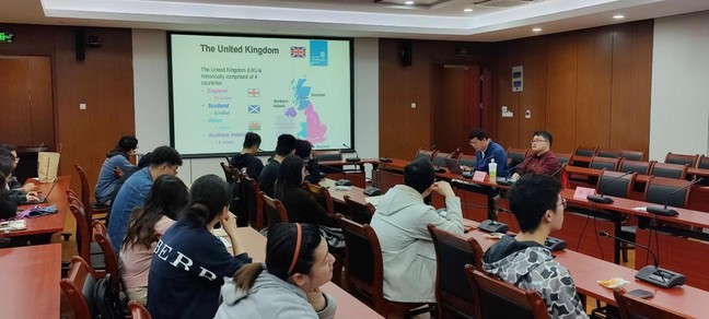 首先,齐永晓对王广珍老师、李倩老师和徐嘉辰学长的到来表示欢迎,感谢他们对公司留学工作的大力支持,希望同学们能够认真聆听、主动交流,了解清楚公司的海外学习项目有哪些以及如何进行项目申请;学习自主留学申请如何提前早做准备;希望交流会能够帮助大家进一步规划海外学习、助力同学们成长成才。
