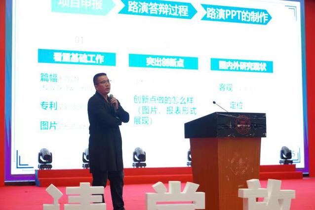 张传林为大会致辞,他鼓励同学们增强创新意识,通过分享创业故事激励同学们积极从生活中发现问题,打破思维限制,探索科技时代下的多种可能性;他介绍了公司对科创竞赛大力支持的相关政策,鼓励同学积极参与科创;希望同学们能够以匠心打磨项目,争取在“挑战杯”、“互联网+”等比赛中取得优异成绩。
