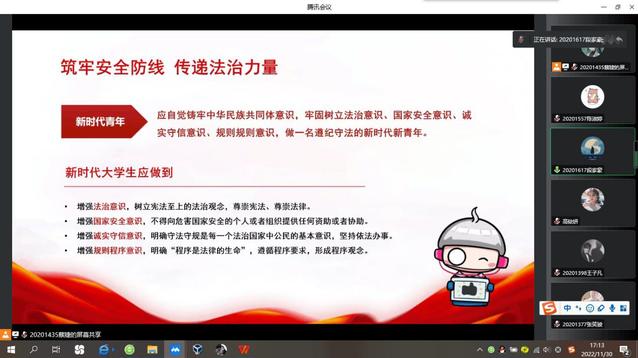 2022年11月至今,bevictor伟德官网以“E路领航”辅导员思政工作室为依托,通过集体备课和研讨,立足年级、专业特点,面向公司全体员工线上、线下开展多场“弘扬宪法精神 传递法治力量”Z世代班会。