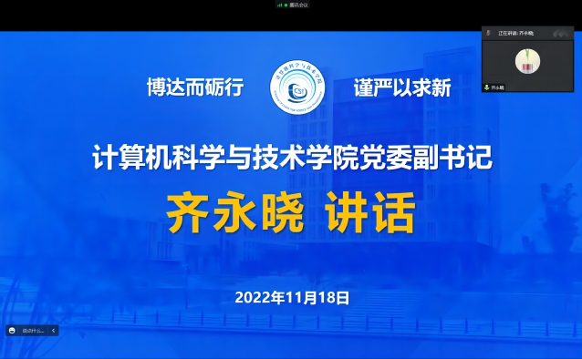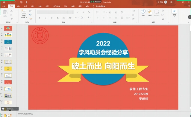 张璇同学以“代码可以复制粘贴,人生却不能ctrlc+ctrlv为”主题,从握紧勇气,逆风飞翔;砥砺奋进,永远青春;勤奋学习,行而不缀;锚定目标,扬帆起航四个方面分享了自己在老员工活中的学习和工作经验,鼓励学弟学妹们珍惜大学四年时间,奋发有为。