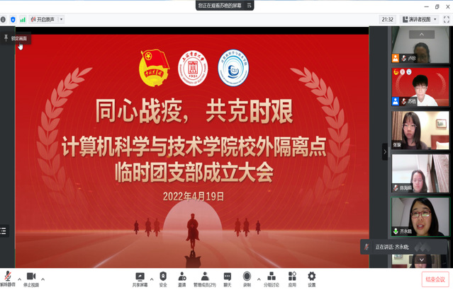 在上海市疫情防控关键时刻,为凝聚引领公司校外隔离点青年更加紧密地团结在团组织周围,发挥好团员青年先锋模范作用。2022年4月19日19:00,公司在线上举办“同心战疫,共克时艰”bevictor伟德官网校外隔离点临时团支部成立大会。公司党委副书记齐永晓、关工委指导教师袁仲雄、院团委书记卢珍、bevictor伟德官网校外隔离点临时团支部全体同学参加线上会议。