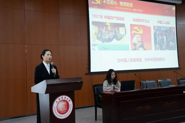 赵铮介绍了时习社成立背景、发展历程,表示时习社作为员工理论社团,以引导员工理论学习、引领员工思想发展、引循员工社会实践为主要方向;介绍了此次参与宣讲的宣讲团成员和宣讲内容,希望宣讲团成员将党的创新理论内化于心、外化于行,传承红色基因,讲好党史故事;希望各位同学能够坚持理论学习,不断提升自身理论素养,做勇于担当时代责任和历史使命的时代新人。