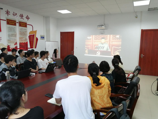 讲话结束后,师生都激动不已。百年征途路漫漫,砥砺奋进新征程。教师代表孙超超表示:“今天是中国共产党的百岁生日,我们学习和见证了中国共产党的伟大历史和成就,我们正处于实现中华民族伟大复兴的时期,我们背负着光荣使命和责任,我们必须忠于党的领导,传承共产党人的拼搏精神,在自己的教师岗位上兢兢业业,不懈奋斗,为培养国家和社会需要的青年人才而发挥自己的才干。”支部书记代表王静表示:“七月流金,鲜花礼赞,百年风雨兼程说不尽坎坷沧桑;百年风云巨变道不完伟业辉煌。作为一名党员,在新征程上为我们欣欣向荣的国家感到荣耀,为我们不断前进的党感到骄傲;为能够投身充满机遇和挑战的现代化建设而感到自豪!百年恰是风华正茂,回首过去,展望未来,有中国共产党的坚强领导,中华民族伟大复兴的中国梦一定能够实现。”研究生党员代表卢官宇表示:“百年华诞,百年征程,中国共产党始终秉持着“为有牺牲多壮志,敢叫日月换新天”的精神,为实现中华民族的伟大复兴而奋斗。我们作为一名研究生党员,正值我们的青春年华,但同时择正值祖国的美好春天,我们要用属于自己的力量,为祖国的伟大复兴而奋斗。专心科研,用科技促进发展,提升自身的创新能力。不忘初心,牢记使命,永远跟党走!”本科生党员代表才智表示:“从一艘小小红船,到如今的巨轮,百年历程中党经历了无数坎坷。在新时代,我们更不能忘记初心使命,要学习先进共产党员不畏艰难,勇往直前的精神,学习他们无私奉献,勇担重任的精神,要练就过硬本领,树立远大理想,把个人发展融入国家伟大复兴的大业中去。”