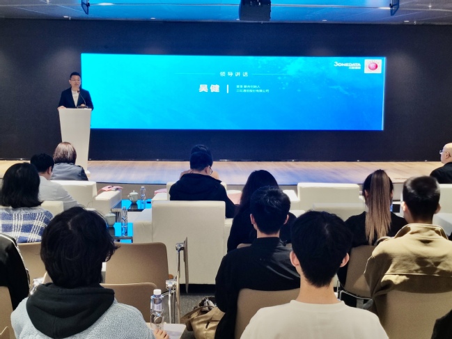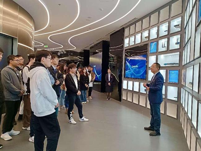 参观企业环节,与会师生参观三旺通信企业展厅、实验室以及相关工作环境,共同观看了三旺通信相关宣传片,沉浸式体验了企业多个应用展示场景,对三旺通信股份有限公司的发展历程、未来发展方向、公司理念等有了更深入的了解。期间黄俊特别介绍了公司的产品和相关研发应用的背景。