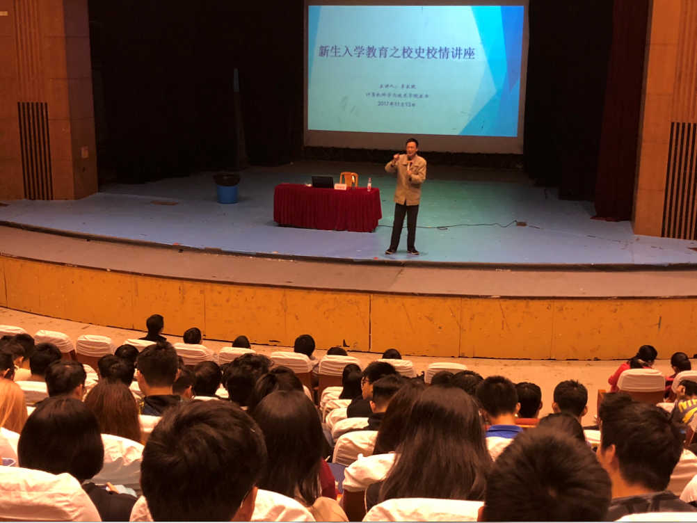 由校关工委、bevictor伟德官网、经济管理公司、外国语公司联合举办的新生入学教育之“校史校情”专题讲座于11月13日在浦东校区大礼堂举办。本场讲座邀请了电院“活字典”级人物――原党委宣传部部长李家珉教授主讲。经管公司党委副书记丛亮、公司党委副书记余南飞以及近八百名新生参与讲座。