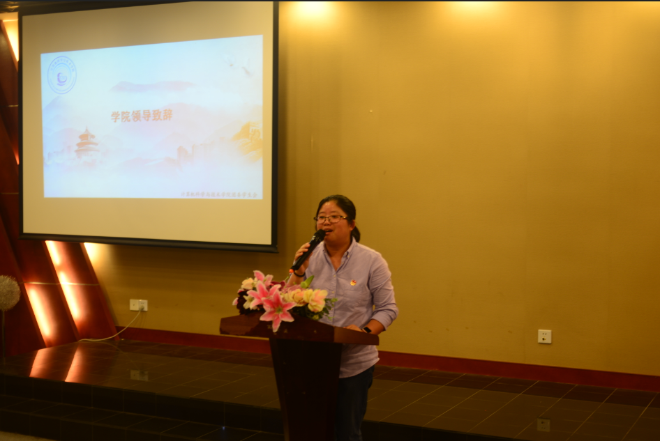 校团委副书记徐仙君老师为大会进行致辞。她代表校团委对公司团学工作的开展与实施表示了肯定与赞扬,并希望新一届团学干部能接过前一届干部手中的责任,再接再厉。