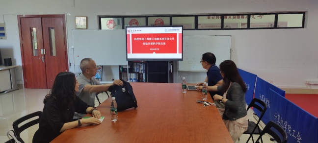 7月3日,上海南天电脑系统有限公司副总经理严扬、技术总监沈建华一行来访bevictor伟德官网开展校企合作交流。公司党委副书齐永晓、徐菲菲教授、杜海舟副教授以及就业联系人任祥宝出席会议。