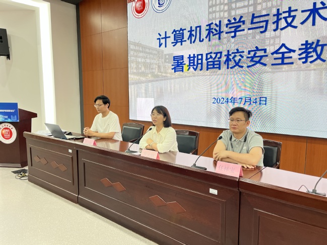 会上,齐永晓首先从安全教育工作、留校管理要求等方面展开,强调了消防安全、人身财产安全、交通出行安全和防范电信诈骗,告诫同学们要严格遵守暑假留校安全管理制度,增强安全防范意识,筑起一道保障假期留校员工认真学习、积极实践的“安全屏障”。同时嘱咐同学们充分利用假期留校时间开展科学研究和个人学习,收获科研果实,学有所成,希望同学们度过一个安全、充实、愉快的假期。会上留校员工签署了《2024年本科生暑假留校安全承诺书》《2024年研究生暑假留校安全承诺书》,相关辅导员详细解读了留校的管理工作。