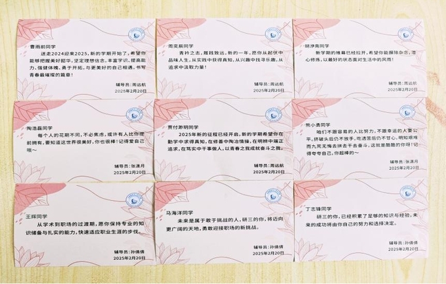 公司各年级辅导员也为同学们准备了精美的开学礼包与新学期寄语卡片,同学们收到后纷纷表达对公司和老师们贴心关怀的感谢,并表示新的学期将怀揣梦想、不负韶华,立青云之志,做上电追梦人。